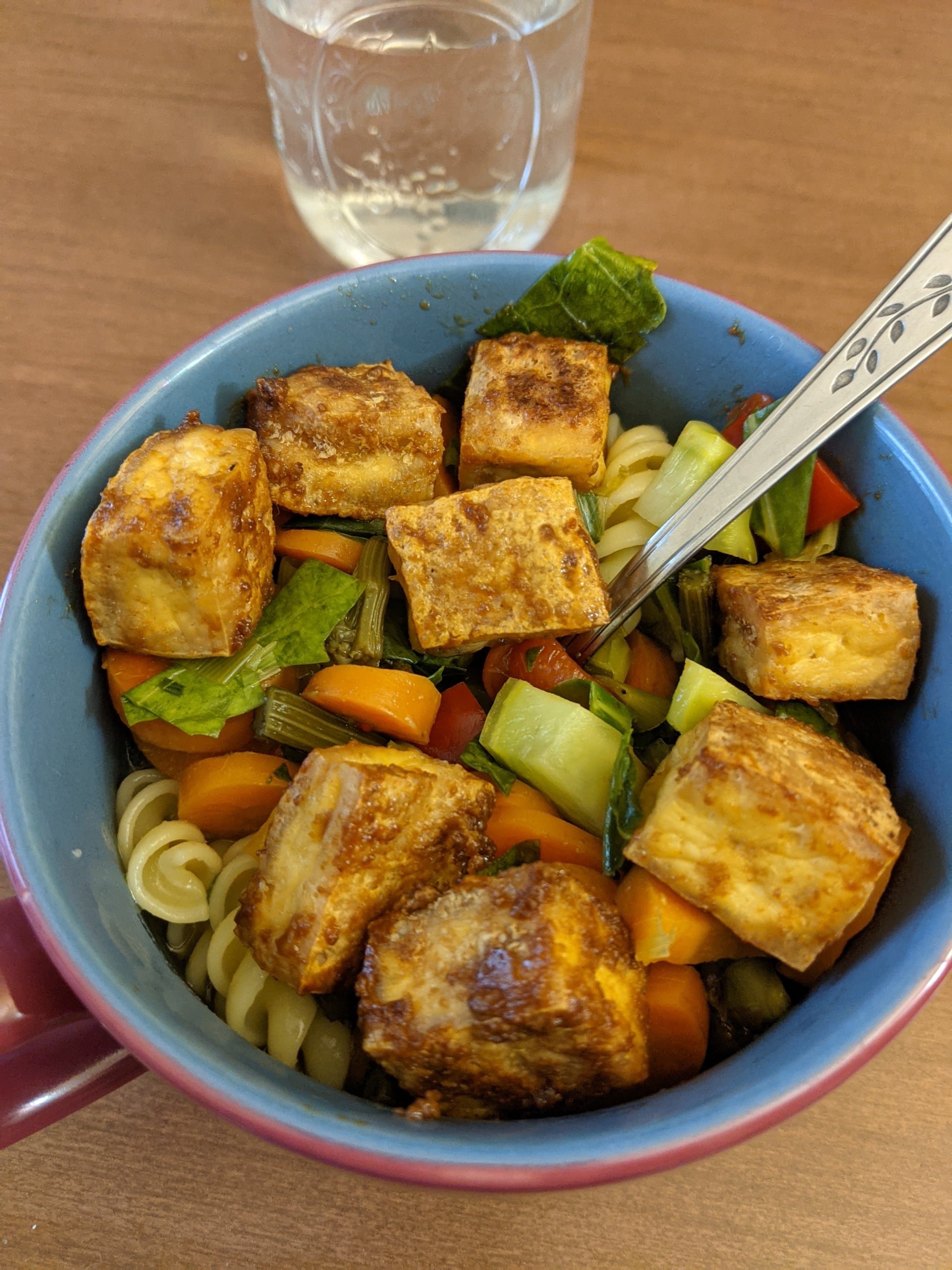 In the evening, my daughter went off on a previously planned commitment, and I had time alone with my other child and their partner, and enjoyed a delicious vegetable soup with pasta and tofu.